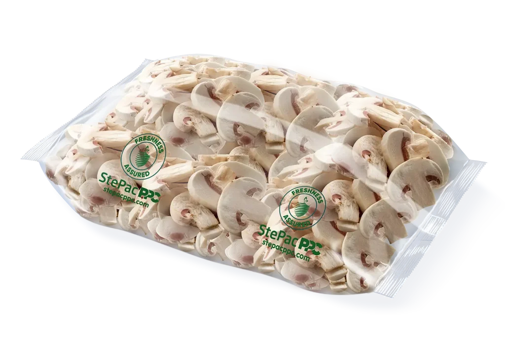 StePacPPC has developed packaging for mushrooms designed specifically to maintain the freshness of whole and sliced white mushrooms, and whole exotic mushrooms. The customized films significantly slow down aging, reduce the risk of decay and reduce weight loss, preserving appearance, texture, nutrition, and flavor thereby effectively extending shelf life and reducing waste and cost.